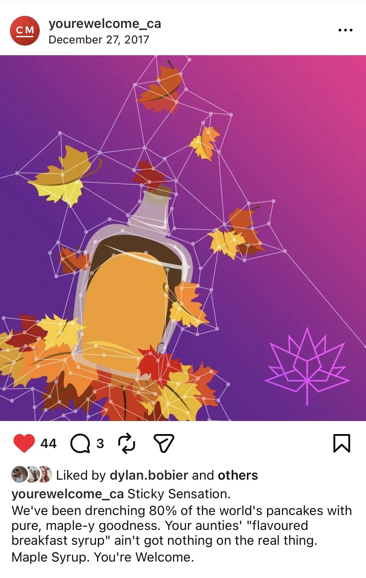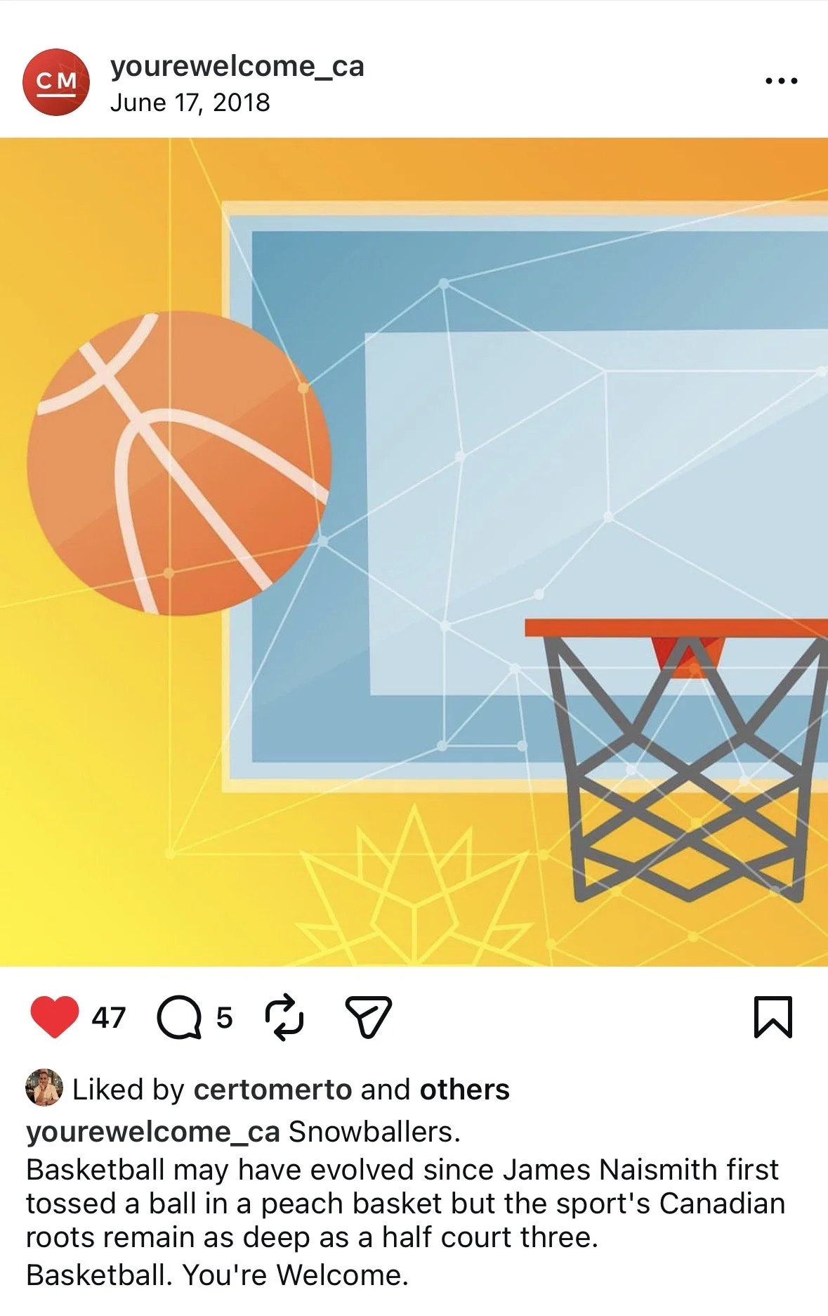Our launch began with 21 of Canada's cultural influences, scientific achievements, and destination locations. But this great nation has given us much more so we didn't stop there. We kept the yearlong celebration rolling with fresh, compelling content updated bimonthly and posted to Instagram and Facebook, strategically released for relevant holidays and seasons. So come for a scroll, cast votes for your faves, and see just how much Canada has been up to these past 150 years.